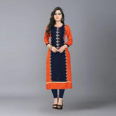 Buys Women's Orange, Blue Color Rayon Straight Kurta