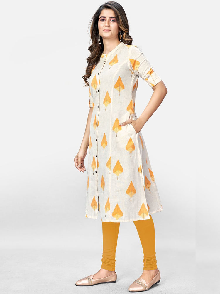 Vbuyz Women's Printed A-Line Cotton Beige Kurta